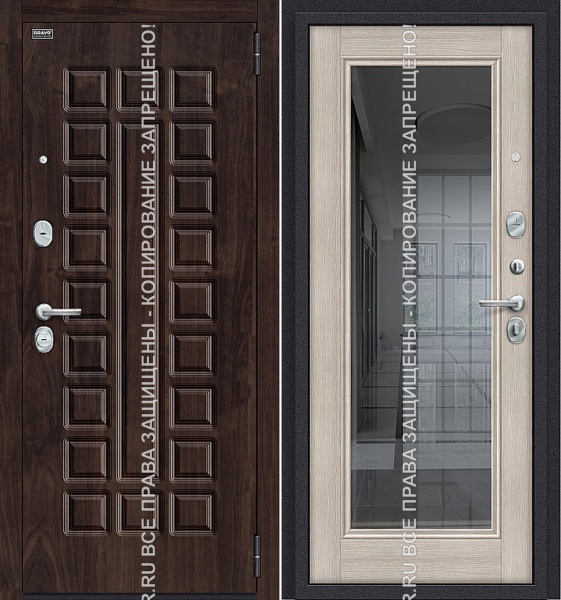 Также выбрать цветовую отделку внешней/внутренней стороны двери и посмотреть встраиваемую фурнитуру.