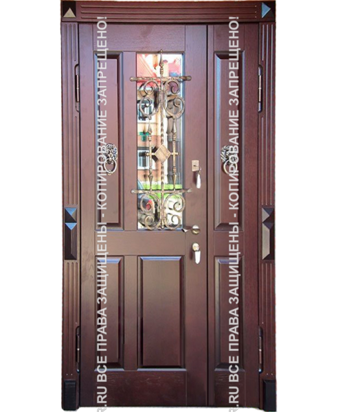Входная уличная дверь МДФ с ковкой/стеклом 3125
